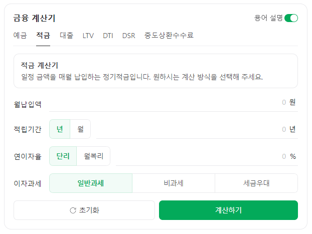 이번 포스팅의 주제는 '적금이자계산기 사용법' 입니다.