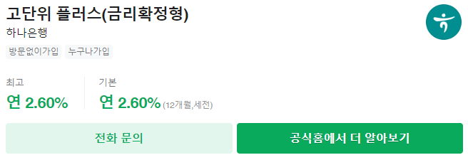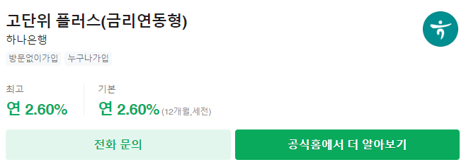 금리 2.600% (12개월), 최고 2.600%(12개월)