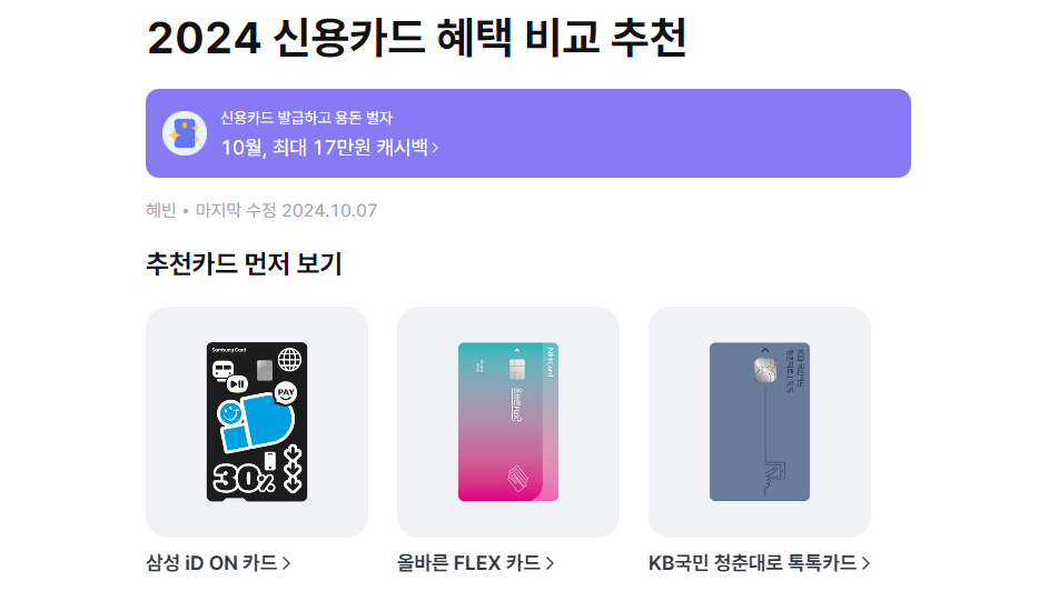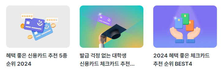| 2024 혜택 좋은 체크카드 TOP 4 (5) | 2024.10.23 |